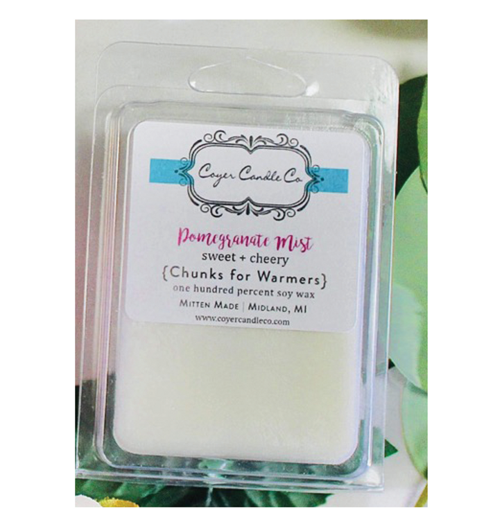 These clamshells are hand-poured, triple-scented, dye-free 100% soy wax melt chunks for warmers.