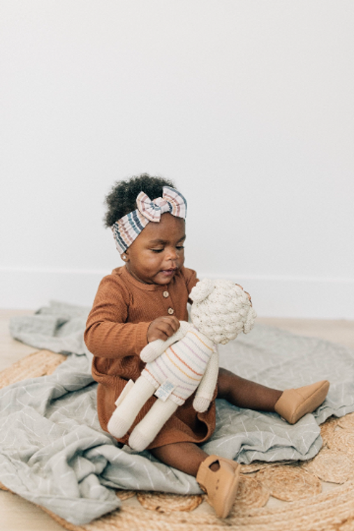 These nylon headbands are the perfect headband for your little one. These darling headbands are one size fits all and are ultra-soft and stretchy to grow with your newborn to any age. This darling nylon headband has a trendy stripe print throughout. Each bow is 3” and tied on.